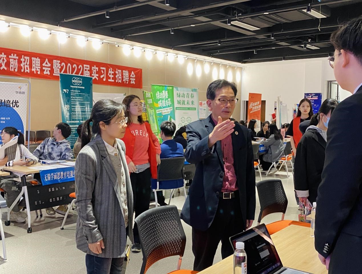 At the beginning, Dean Teng Lefa and Deputy Secretary and Deputy Dean Xu Jing had a face-to-face conversation with the employers and the students at the fair to learn about the recruitment requirements and the students’ demands.