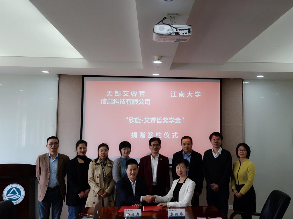 On the morning of April 28, General Manager Xu Jianxin and marketing director Lu Yajuan from Shanghai Xinxuan Consulting and Wuxi Airuizhe Information & Technology attended the donation ceremony for “Xinxuan-Airuizhe Scholarship” in 304 Conference Room in School of Business. Also present were Teng Lefa, dean of the School of Business, Dou Xinhua, deputy director of Social Resources Department, and Wang Yuhong, vice dean of the School of Business and director of MBA Program Center.