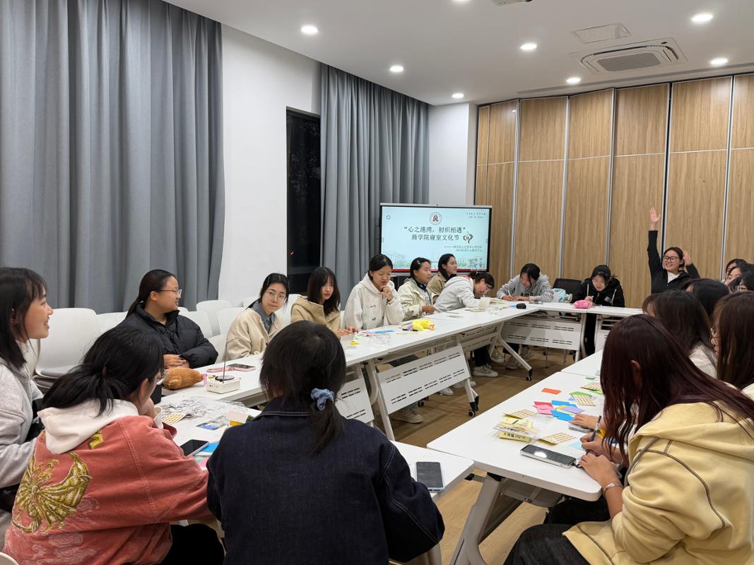 活动设置了多项趣味游戏,有效增进了寝室成员之间的情感交流与团队协作。在“听歌识曲”环节,同学们踊跃抢答,熟悉的旋律迅速点燃现场气氛;在“情绪盲盒共创”环节,各寝室通过制作情绪卡片与治愈寄语,打造出寝室专属的心灵慰藉小天地;在“港湾暖物套圈”环节,室友间默契配合、互相指导,不仅圈住了小零食、迷你绿植、玩偶等暖心礼品,更圈住了彼此的信任与默契。