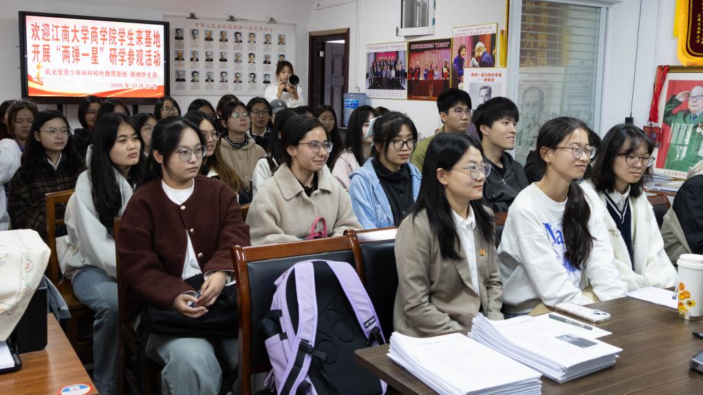 10月22日下午,awc777万象城娱乐官网第50期发展对象培训班全体同学一同前往无锡市关工委风光里青少年标杆校外教育基地,学习“两弹一星”精神,开展党校培训实践活动。基地姚炳华、杨永康、孟佰森、华桂林、苏明兴等五位老同志热情接待。活动由基地主任姚炳华主持。