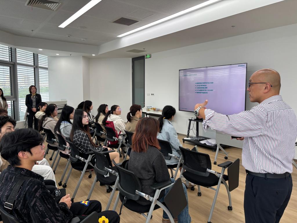 刘云娣与采购总监诸冬淦与同学们热情互动,耐心回答同学们关心的实习选择、职业发展、企业文化等各类问题。同学们积极提问,现场气氛热烈。