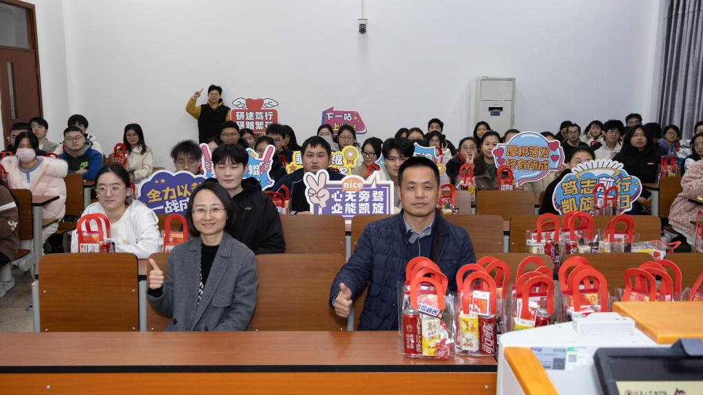 学院领导与老师们亲手为在场考研学子送上考研慰问大礼包。这份沉甸甸的礼包里,不仅有实用的备考物资,更有师长们的殷切关怀。慰问心意如同冬日里的暖阳,驱散备考的疲惫与寒意,化作冲刺路上的强劲动力,助力同学们以坚定的目光、饱满的状态迎战考研。